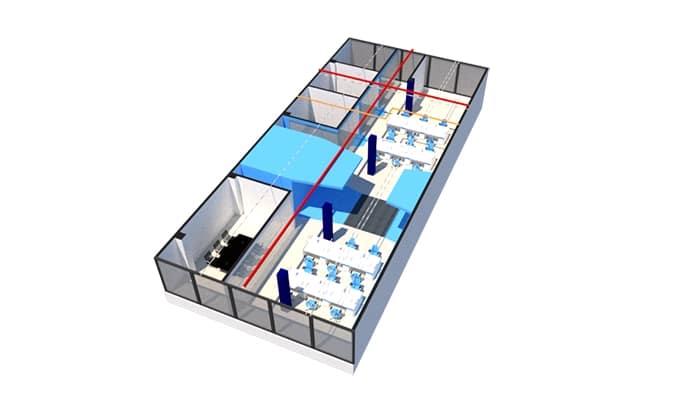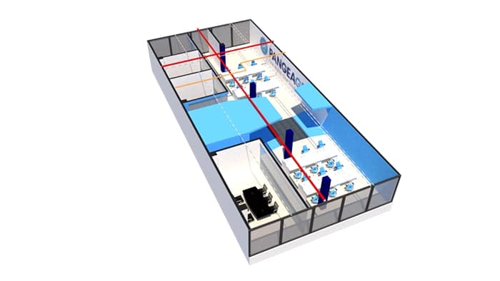 The flexibility is also reflected in the arrangement of the spaces, which can be changed according to the needs. Desktops and shared workspaces can be easily rearrange to accommodate different tasks and work teams.
